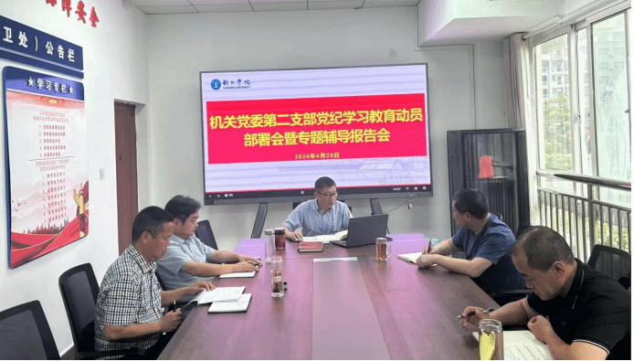4月29日,机关党委第二支部召开党纪学习教育动员部署会暨专题辅导报告会,支部书记宋劼主持会议并作专题辅导报告,支部全体党员参加了会议。
