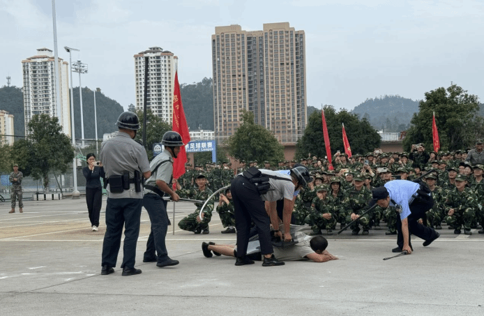 9 月 16 日上午,beat365在军训期间组织反恐防暴演练暨消防应急演练及消防知识培训活动。该活动由保卫处邀请武警贵州省总队铜仁市支队、碧江区消防救援支队、碧江区公安分局文昌派出所协助指导。
