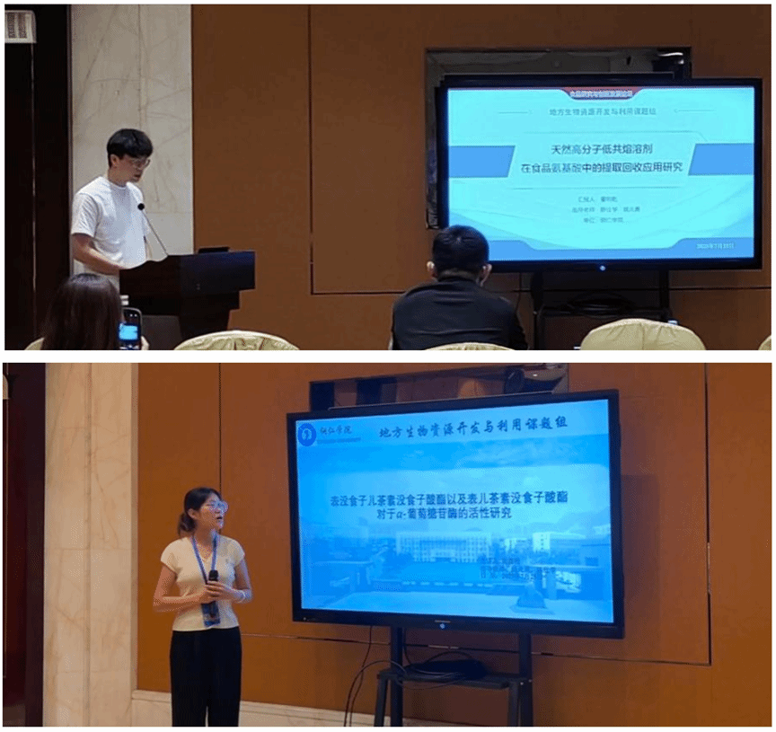 在本次会议中,我院研究生霍明乾同学以“天然高分子低共熔溶剂在食品氨基酸中的提取及回收应用研究”为题,庞鑫艳同学以“表没食子儿茶素酸酯以及表儿茶素没食子酸酯对α-葡萄糖苷酶的活性研究” 为题,分别在“研究生论坛”进行了研究成果分享,获得了与会专家的高度评价。