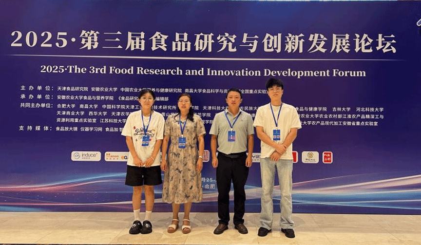 2025年7月25日至27日,第三届食品研究与创新发展论坛在合肥举行。本届论坛由天津食品研究院、安徽农业大学、中国农业大学营养与健康研究院、南昌大学食品科学与资源挖掘全国重点实验室主办,安徽农业大学食品与营养学院、《食品研究与开发》编辑部承办,合肥大学等22家单位共同承办。论坛由中国工程院院士任发政教授和谢明勇教授领衔,来自全国食品及相关领域高校、科研院所的专家学者及业界精英500余人出席论坛。我院生物资源综合利用与开发课题组教师陈仕学、姚元勇,以及2023级材料与化工专业硕士研究生霍明乾、2024级材料与化工专业硕士研究生庞鑫艳出席了会议。