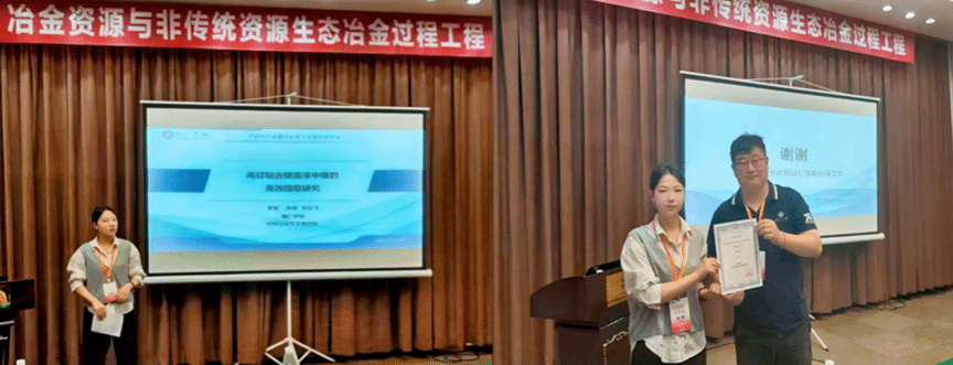 2025年7月30日下午,我院2023级研究生张倩同学在中国有色金属学会第8分会场(冶金资源与非传统资源生态冶金过程工程)就“高硅铝含锂废渣中锂的高效提取研究”进行了研究成果汇报。为期三天的学术年会在热烈的讨论氛围中圆满落幕,与会研究生在交流中不仅加深了学术互动,也拓宽了研究视野,提升了科研实践能力。正如年会主题所强调,在新型工业化的浪潮下,青年学者正以创新为驱动力,在有色金属领域不断开拓进取。随着产学研融合的持续深化,他们的研究成果必将为行业的高质量发展注入强劲动力。
