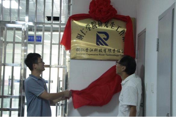 (冷森林院长与杨玲卫部长为研究生工作站揭牌)