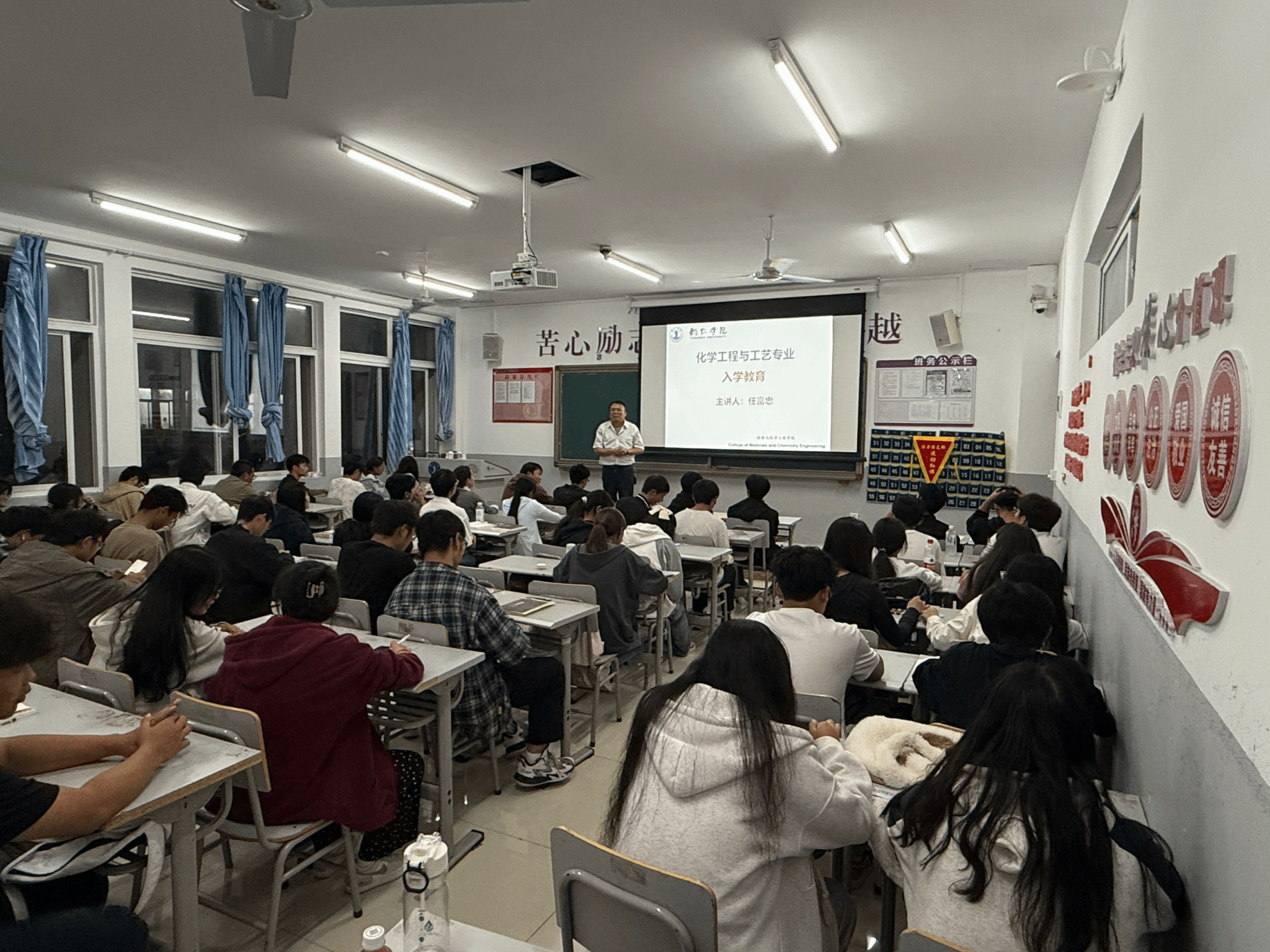 2025年9月25日,我院2025级化学工程与工艺专业新生在依仁楼B403教室集中参加了由任富忠老师主讲的“入学教育”宣讲活动。本次活动旨在强化新生的专业认知、激发学习兴趣,帮助其明确发展方向,顺利适应大学生活。
