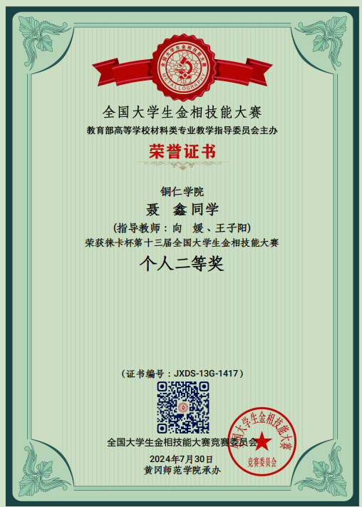 聂鑫 同学 获个人“二等奖”