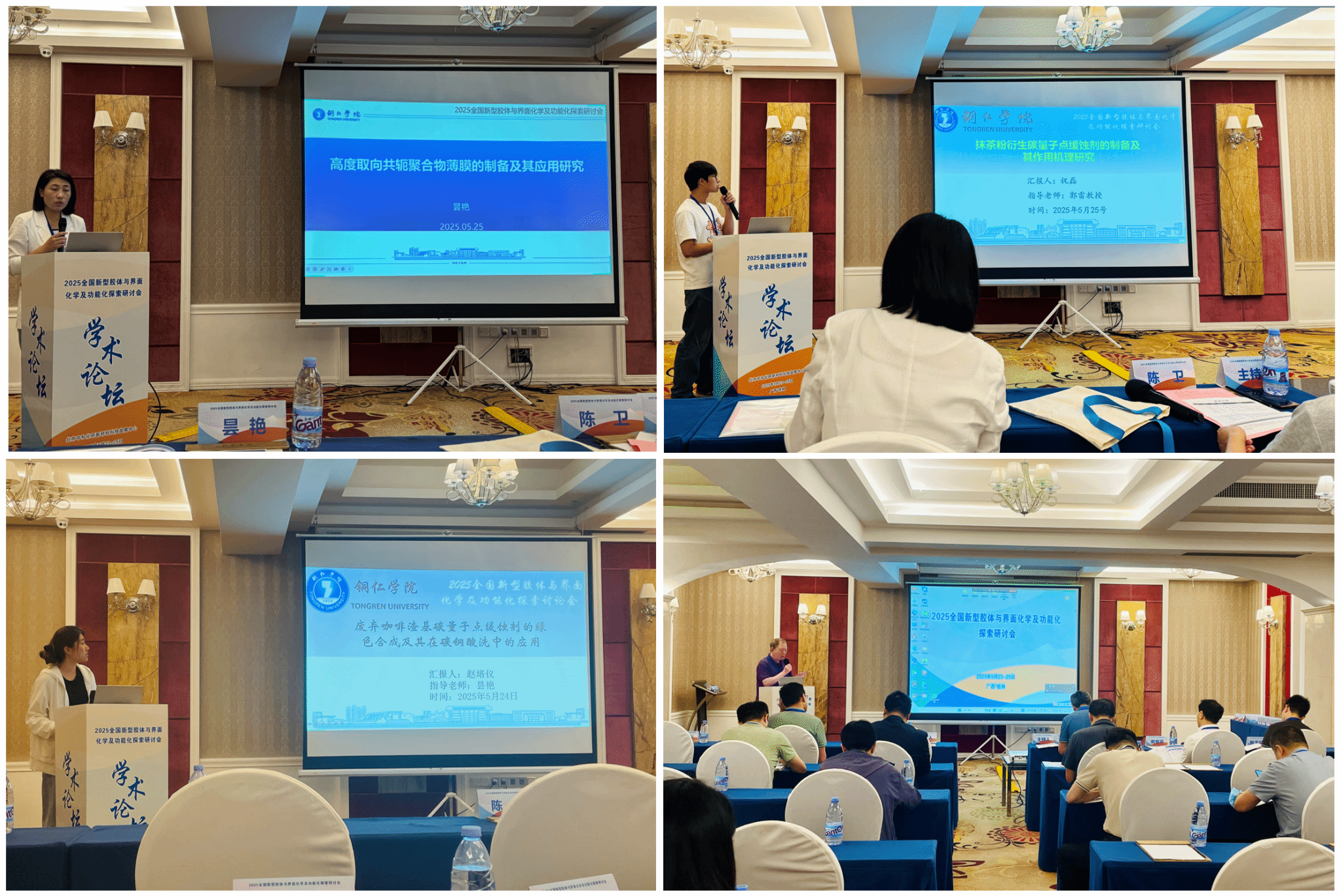 昙艳老师在会场作了题为“高度取向共轭聚合物薄膜的制备及其应用研究”的邀请报告,系统展示了其在先进功能材料制备技术领域的最新突破,并和与会专家学者就相关研究热点进行了深入探讨。硕士生祝磊、赵培仪分别以“抹茶粉衍生碳量子点缓蚀剂的制备及其作用激励研究”“废弃咖啡渣衍生碳点的绿色合成及其在碳钢酸洗中的应用”为题作了学术报告,全面呈现了课题组在生物质资源高值化利用及金属防护领域的创新性研究成果。两篇报告在会议现场得到了广泛关注与认可。我院材料科学与工程专业两名本科生全程参与会议,极大地开阔了学术视野,深入了解了材料前沿领域的发展动态。参会学生表示:此次零距离接触领域专家学者,不仅深化了专业认知,更激发了投身材料基础研究的学术志向。