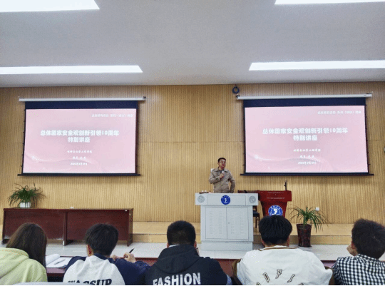 讲座上,龙禹老师就“国家安全”“总体国家安全观”等为在场同学们做了讲述,指出在总体国家安全观理论体系下,国家安全关乎着我们每一个人。通过讲座让同学们明白,国家安全是民族复兴的根基,社会稳定是国家强盛的前提。龙老师最后向同学们提出殷切希望,希望青年大学生重视国家安全,挺膺担当,认真学习,将来为民族复兴贡献青春力量。