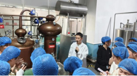 在食品教研室施伽、刘庆庆、朱苗、朱仁威和吴小念老师的带领下,全体师生参观了该企业。参观期间,该企业技术员为同学们介绍了贵州香柚香生态农业有限公司的发展历程、经验现状、业务范围、主要产品工艺流程及企业发展规划。学生们参观了该公司果酒发酵罐、全紫铜蒸馏设备、洁净车间和全自动生产线,50000升白兰地橡木桶藏库等厂区各个功能生产单位。同时,讲解员还详细讲解了桑葚酒、黄桃酒、柚子酒等果酒的关键生产环节,让全体学生看到了先进的设备、智能化的流程、先进的生产工艺和严格的质量控制体系,以及工人们的精益求精和团队精诚合作的精神。参观结束后,开展了一场面对面答疑解惑交流会,该公司技术人员也给同学们提出了学习要求和未来工作的合理建议。