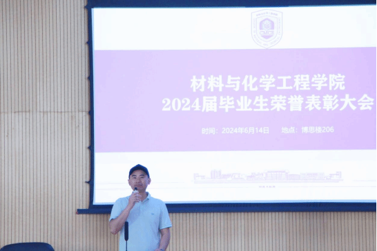6月14日下午,我院2024届毕业生荣誉表彰大会在博思楼206教室隆重举行。院党委书记吴思展、副书记龙禹、副院长陈仕学、团总支负责人郑秋实、各毕业班辅导员、2024届毕业生代表、材化院全体学生。大会由学生科副科长向媛主持。