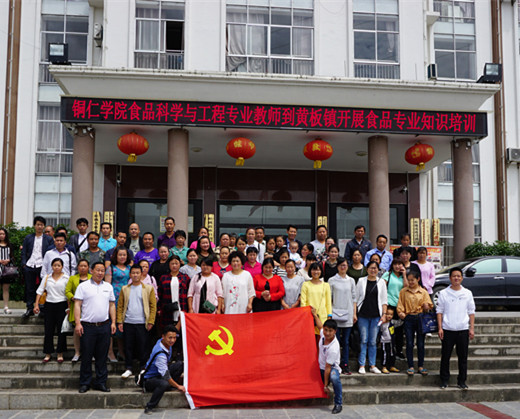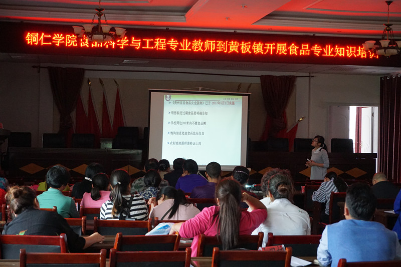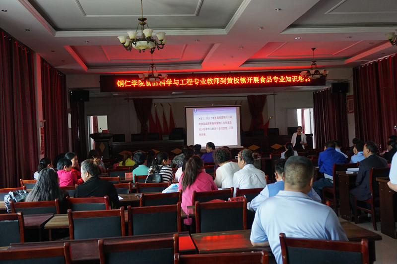 近日,受松桃苗族自治县黄板镇邀请,我院第三教师党支部食品科学与工程社会服务团队老师李刚凤、谭沙、朱苗、朱仁威一行赴赴黄板镇开展食品安全卫生培训。参加此次培训的有该镇14个学校食堂管理者和从业人员、各村卫生员、各副食店负责人及小作坊经营者共计130人开展了食品安全卫生知识培训。
