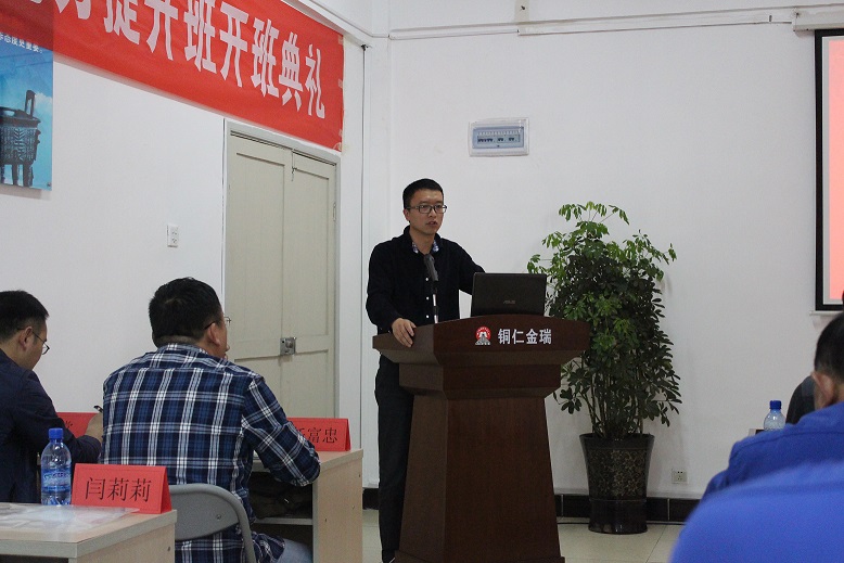2017年05月10日由材料与化学工程学院化学工程系承办的铜仁金瑞锰业专业技术培训班在金瑞锰业举行了开班仪式,开班仪式由金瑞公司综合管理部的杨礼主持,材化院唐帮成书记和参与培训的4位老师,金瑞公司的赵总以及各个部门领导参加本次开班仪式,培训教师任富忠、参与培训的学员代表和金瑞公司赵总分别作了发言,任富忠老师在祝词中表示非常感谢金瑞公司能提供这样一次机会就电解锰生产过程的重点事项进行面对面的交流学习,希望通过本次培训实现两个目的:一是有助于进一步提升金瑞参训员工的专业技术理论知识水平,二是通过培训过程中的交流进一步提升参训教师的实践能力,为在学校培养学生的实践能力提供帮助;金瑞公司赵总表示希望公司员工能够珍惜本次培训机会,认真学习努力提高自己的理论专业技术能力,为公司的发展做出更大的贡献,也希望借此机会加深与beat365英国官方网站材料与化学工程学院的产学研合作深度。