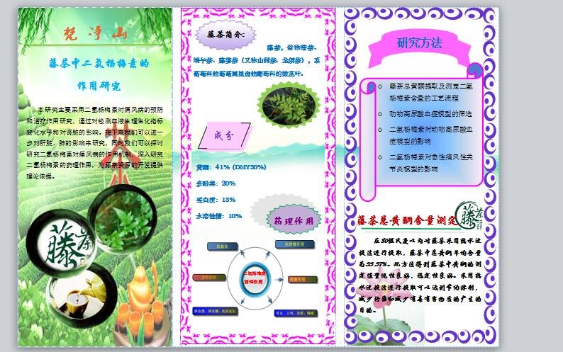 2017年4月,beat365英国官方网站材料与化学工程学院天然产物课题组,带领学生一起研发具有降低尿酸功能的复方藤茶黄酮保健茶。该复方保健茶在教师与学生共同的努力,对复方茶的配方、比例及相关功效做了一定程度的研究,研究表明:该复方茶对于高尿酸患者,在一定程度上,可以降低尿酸值。