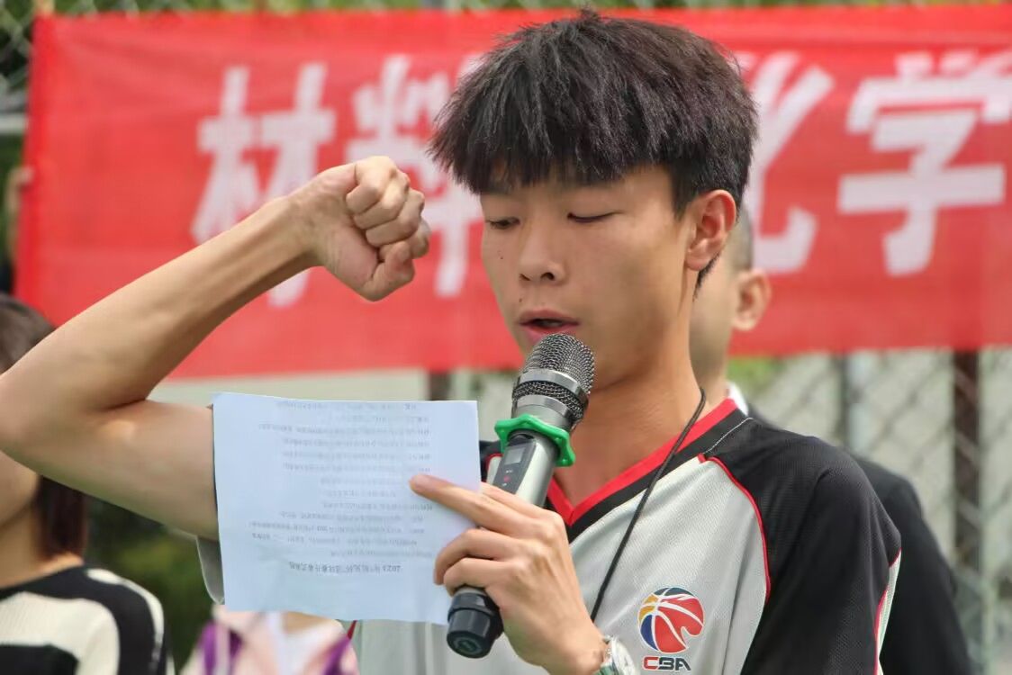 中午12时许,活动开始,师生全体肃立,高唱国歌。国歌声毕,材化院院旗迎风飘扬,20支各班运动员精神抖擞,斗志昂扬。随后,吴思展副书记为比赛致开幕辞。他在讲话中提到本次比赛宗旨是增强体魄,磨炼意志,要求全院学生做德智体美劳全面发展的新时代大学生,并祝愿篮球赛圆满成功。紧接着,李文斌同学和安畅宇同学分别代表裁判员和远动员向大会宣誓。