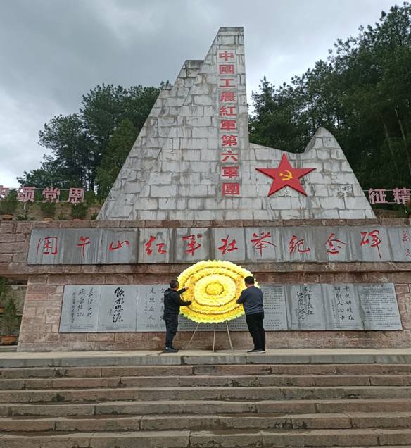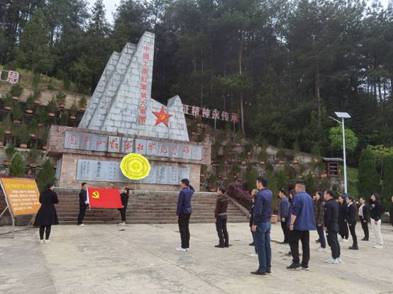 在纪念碑前,大家怀着崇敬的心情为革命先烈敬献花篮,并缓步瞻仰红军烈士纪念碑,深切感受革命烈士伟大的民族气节同滚烫的爱国主义精神。随后,全体党员高举右拳,面对鲜红的党旗重温入党誓词,感悟初心使命,接受革命传统教育。
