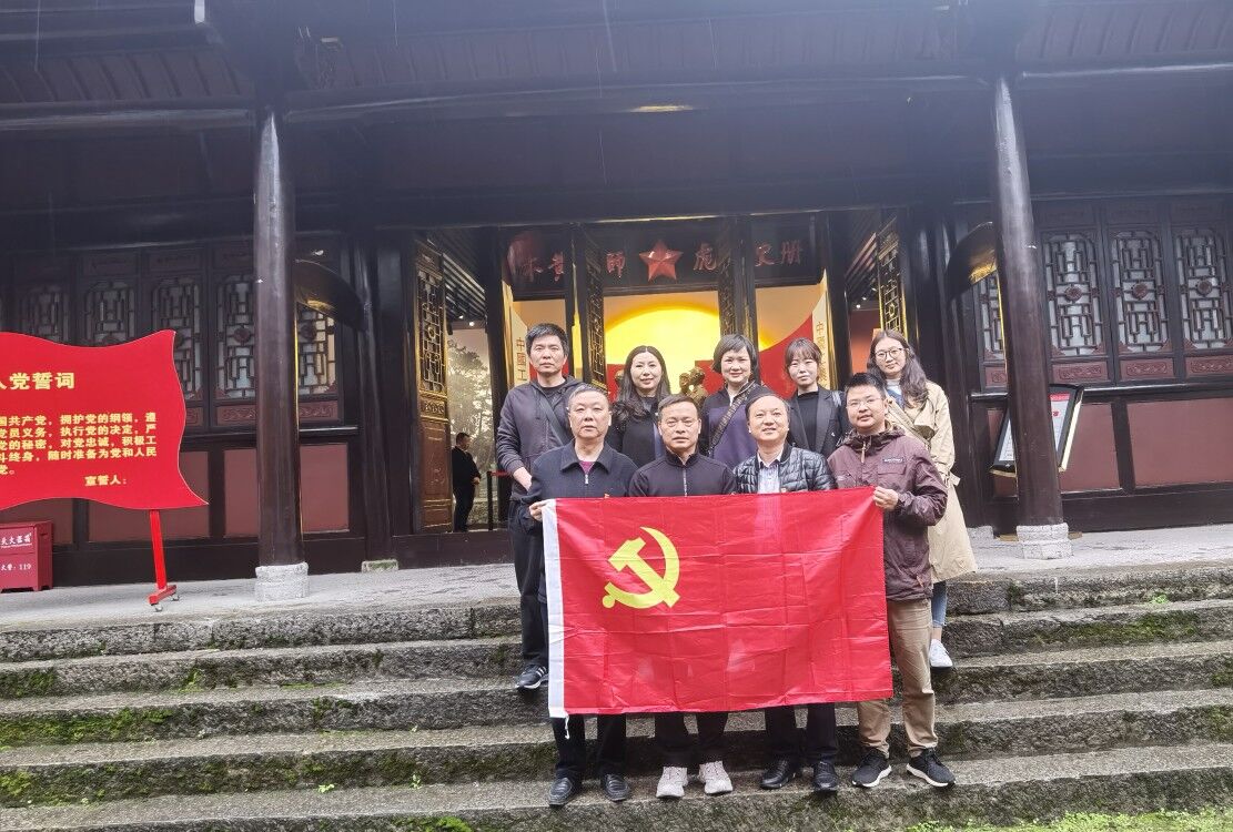 在陈列馆前,全体党员高举右拳,面对鲜红的党旗重温入党誓词,感悟初心使命,接受革命传统教育。随后,大家参观了木黄会师陈列馆,听取工作人员讲解了红二、六军团木黄会师历史及革命先辈志士的英勇事迹,以及对陈列的革命历史文物、人物照片等资料的情况介绍。