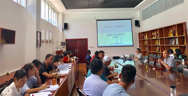 为进一步提高我院师德建设水平,切实提升广大教师师德师风素养,根据《beat365英国官方网站2021年教师师德师风建设工作计划》要求,我院于7月16日在会议室举行题为“回归教师初心使命,争做‘四有’好老师,树立良好的师德师风形象”师德师风教育培训会,培训由余静院长主讲,全院教师参加。