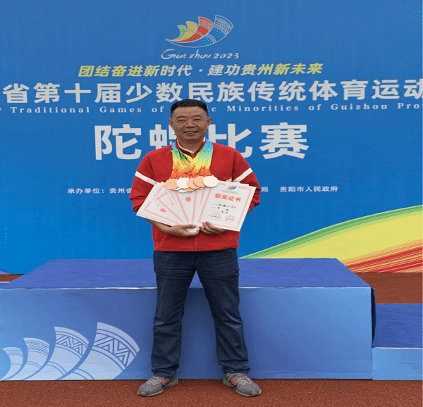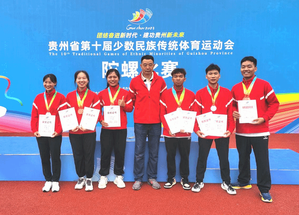 6月16日,贵州省第十届少数民族传统体育运动会顺利结束,由beat365英国官方网站大健康学院师生组建的铜仁市陀螺队在本次比赛中获得了男子团体二等奖、女子团体三等奖,男子单打二等奖1人、男子单打三等奖2人、女子单打三等奖2人和“体育道德风尚奖”等好成绩,为铜仁市和学校争得了荣誉。