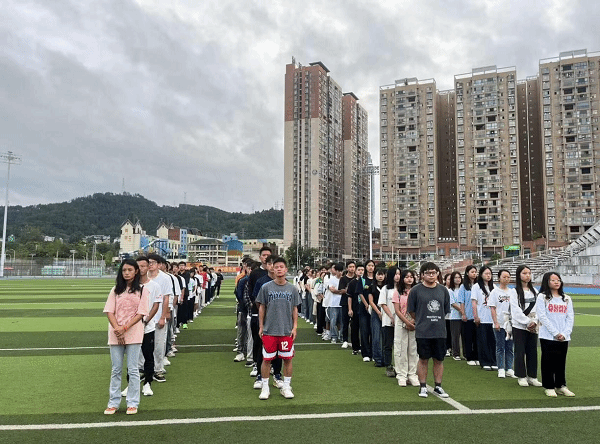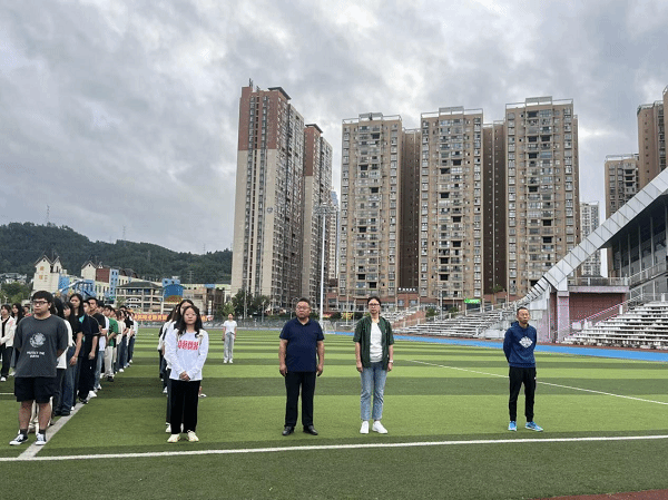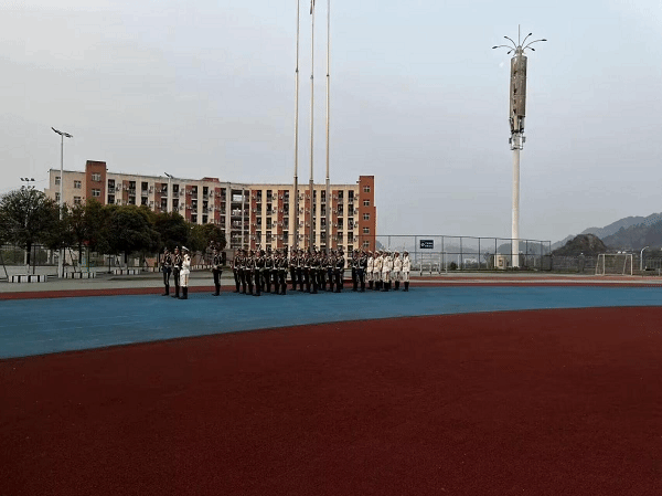 2023年8月28日,我院师生在足球场举行了2023-2024学年第一学期第一次升旗仪式,学工部副部长刘玉康、院党委副书记杨芬、学生科长童富强、团总支负责人袁鸿志以及各班班主任参加升旗仪式。