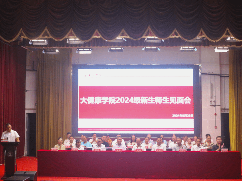 2024年9月23日晚,我院在人文生态馆举行2024级师生见面会,学院领导班子、各科室负责人,以及运动健康系、护理健康系全体教师等参加本次见面活动。见面会由院党委副书记王洪主持。