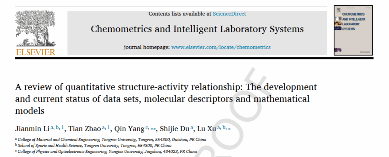 最近,beat365徐路教授课题组应化学计量学国际权威期刊Chemometrics and Intelligent Laboratory Systems(SCI二区)编委的邀请,撰写并发表了题为“定量构效关系综述:数据集、分子描述符和数学模型的发展和现状”长篇综述。材料与化工专业硕士研究生李建敏、赵添为本文的共同作者。