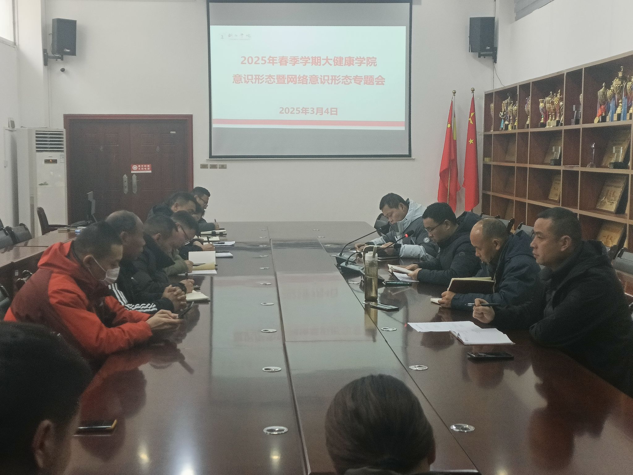 为深入分析研判意识形态暨网络意识形态领域形势,做好风险隐患防范化解,维护意识形态安全,大健康学院于3月4日在院会议室召开2025年上半年意识形态暨网络意识形态工作专题会议。学院党委领导班子、各系(部)负责人、党支部书记、医务室负责人、班主任及师生代表参加会议。会议由吴承品主持。