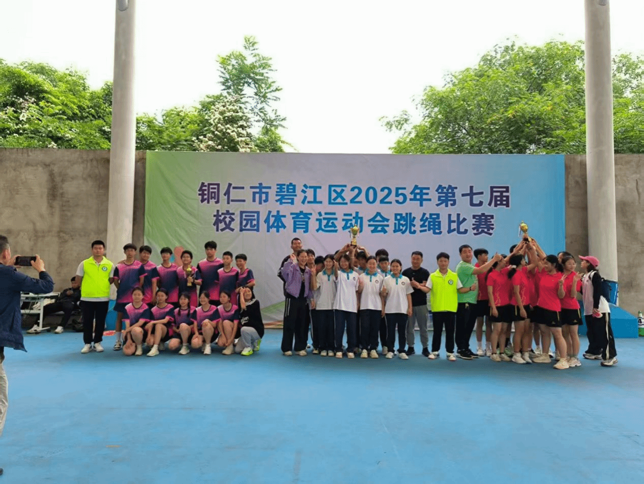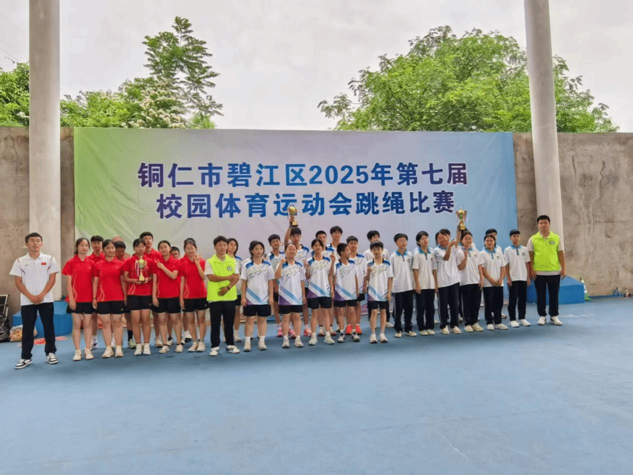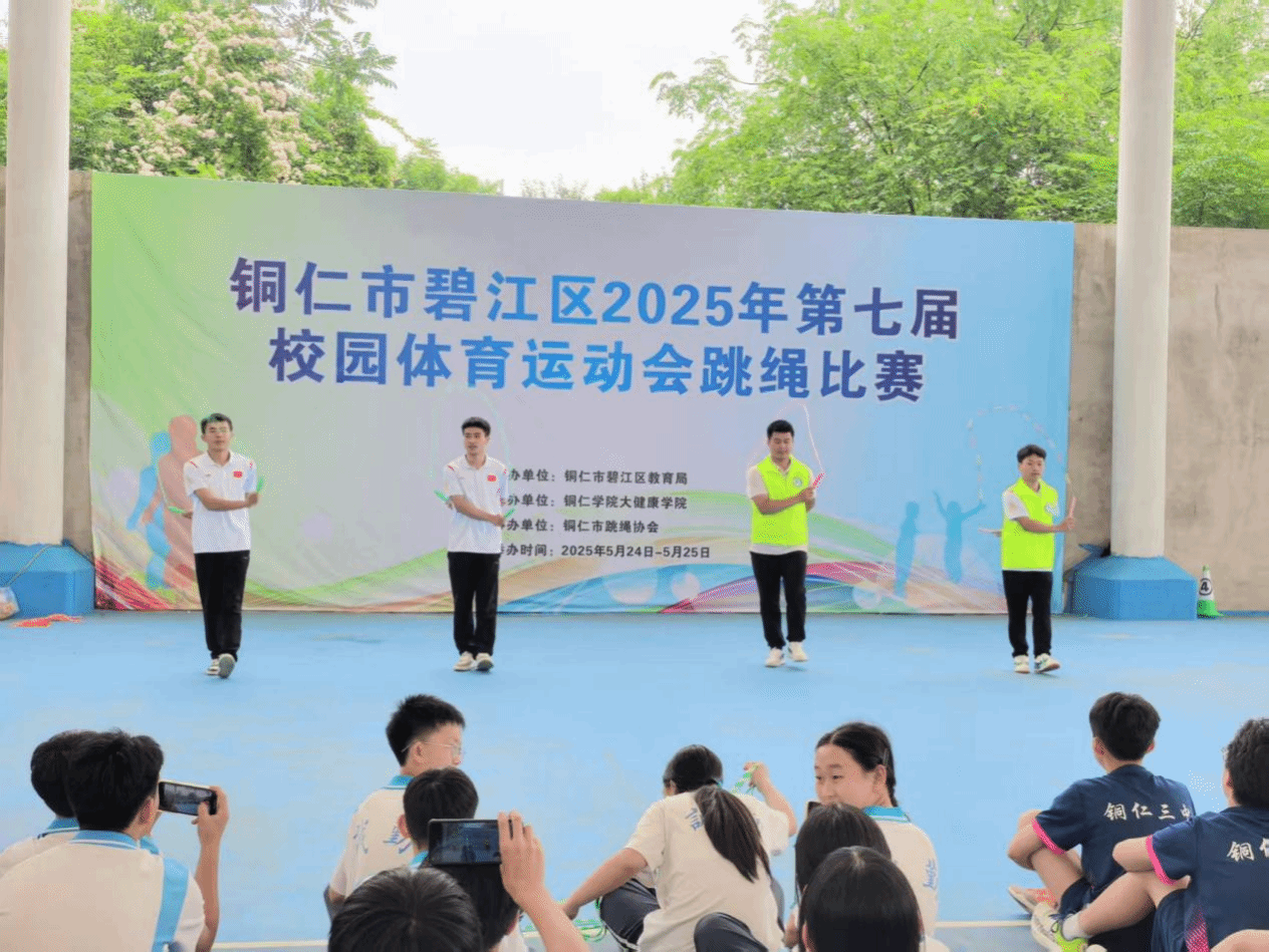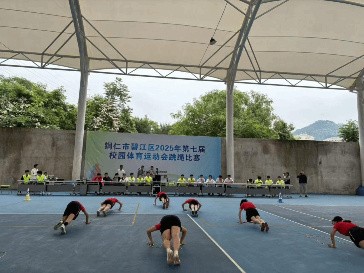 2025 年5月24日至25日,铜仁市碧江区第七届校园体育运动会跳绳比赛在beat365英国官方网站风雨篮球场火热举行。本次比赛由碧江区教育局主办,beat365英国官方网站大健康学院承办,铜仁市跳绳协会等单位协办,来自全区41支队伍、450余名运动员参赛,比赛规模创历届之最。