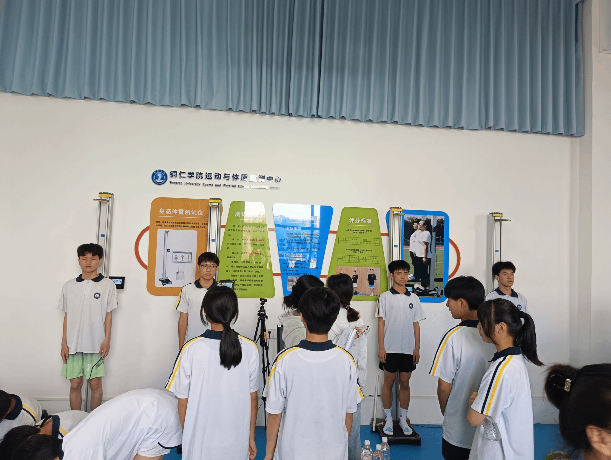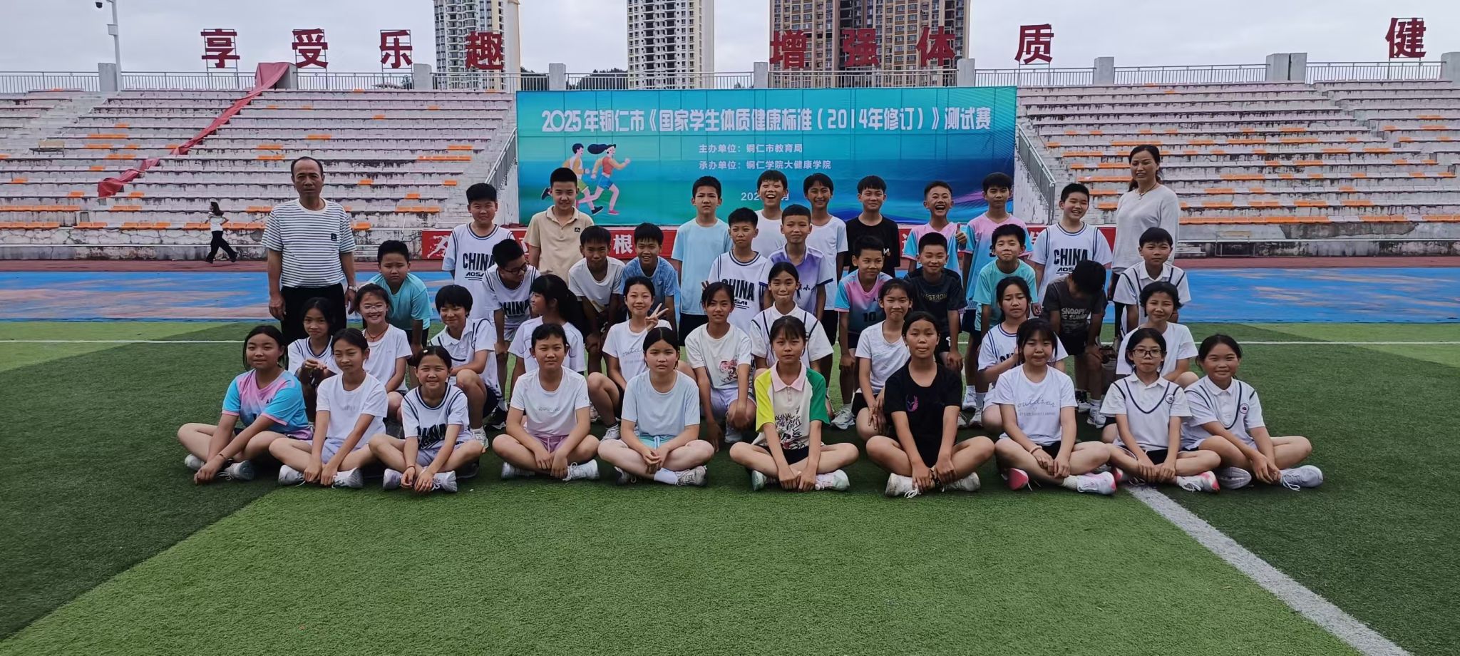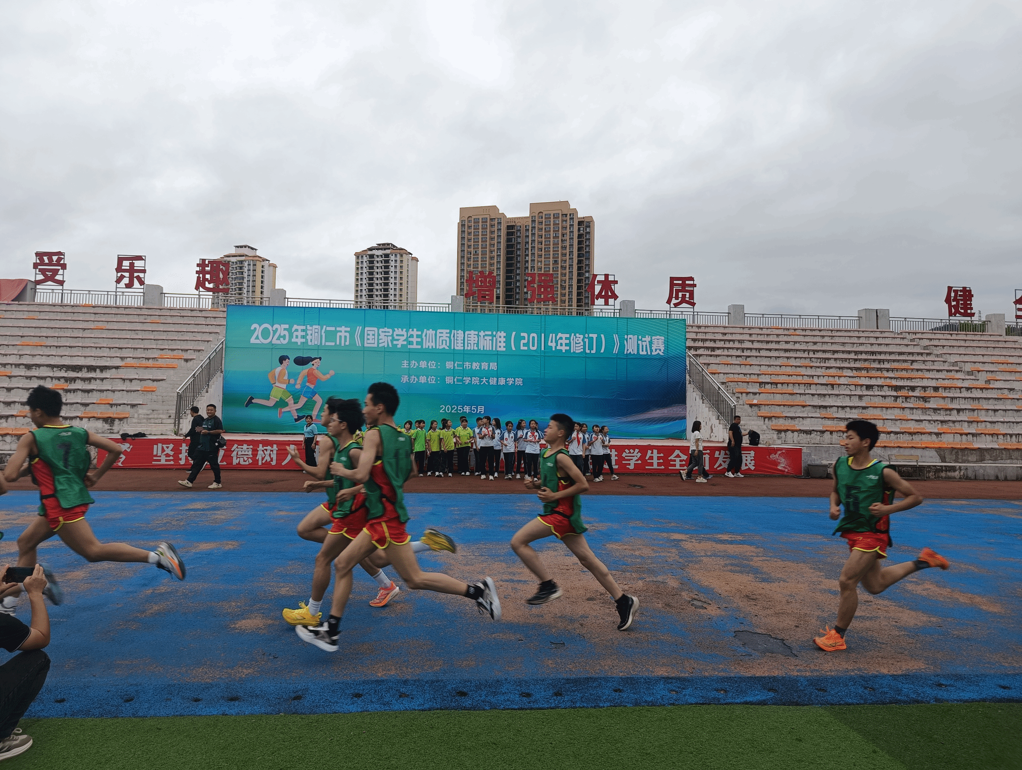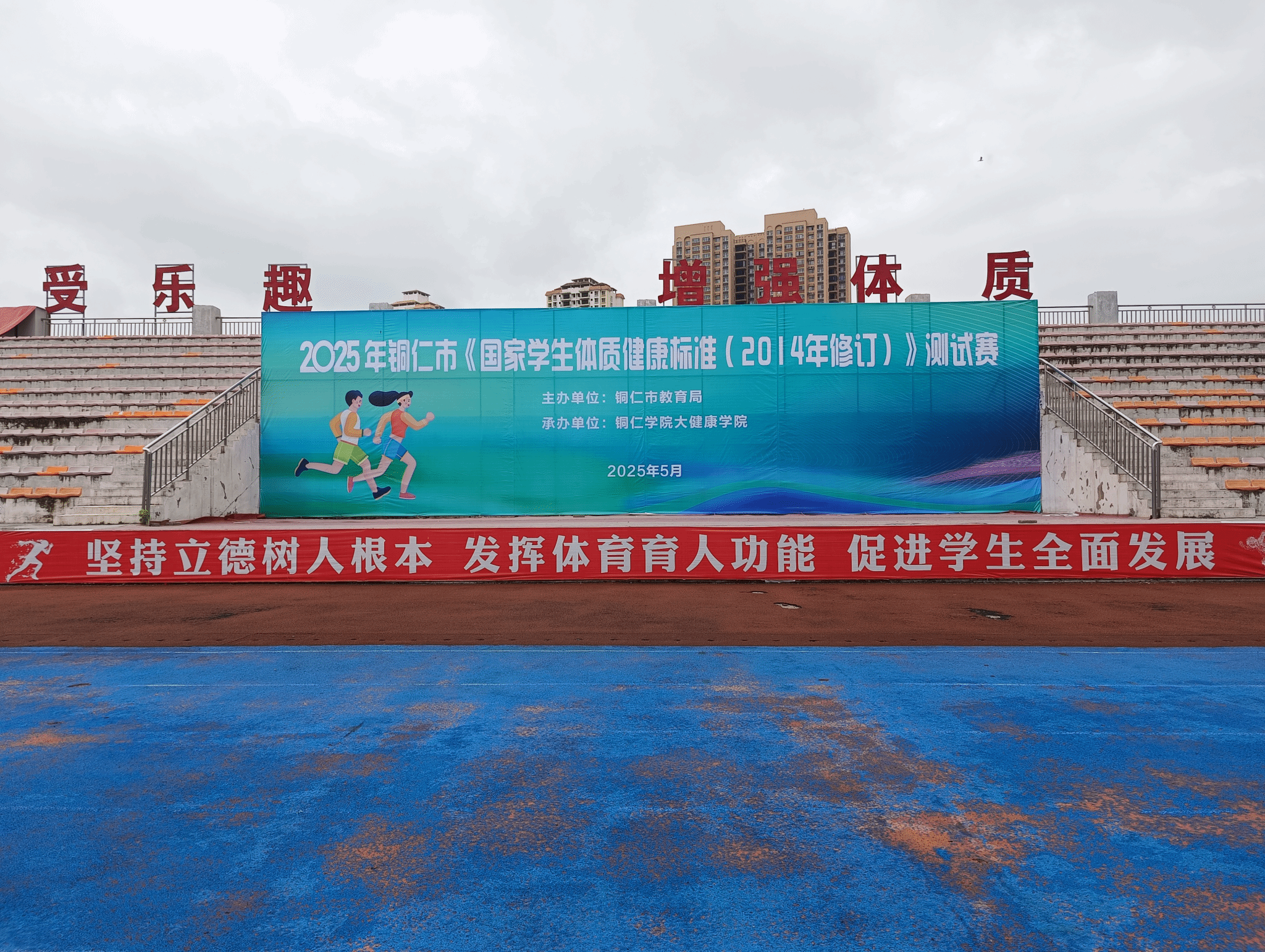 2025年铜市《国家学生体质健康标准( 2014年修订) 》测试赛于5月16-17日在我院举行。测试赛由铜仁市教育局主办、我院承办、全市各区县840名同学参加;参测学生中有一半是统一由铜仁市教育局随机抽取,另一半生由各区县选派组成代表队。本次测试采用全智能仪器设备管理控制系统进行。测试项目包括身体形态(BMI)、身体机能(肺活量)和身体素质(50米跑、坐位体前屈、跳绳、仰卧起坐/引体向上、中长跑等),全面考量学生体质健康各维度。