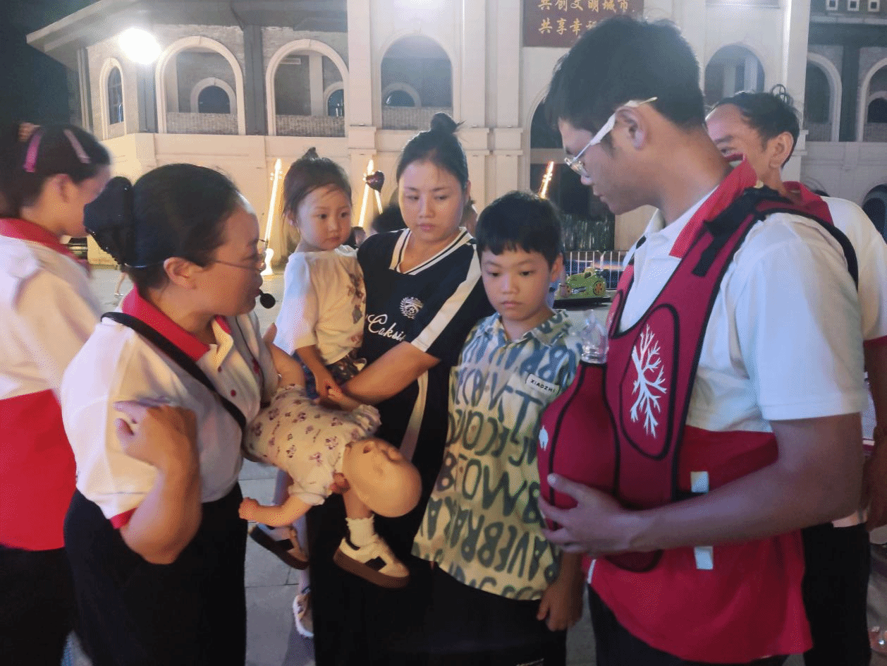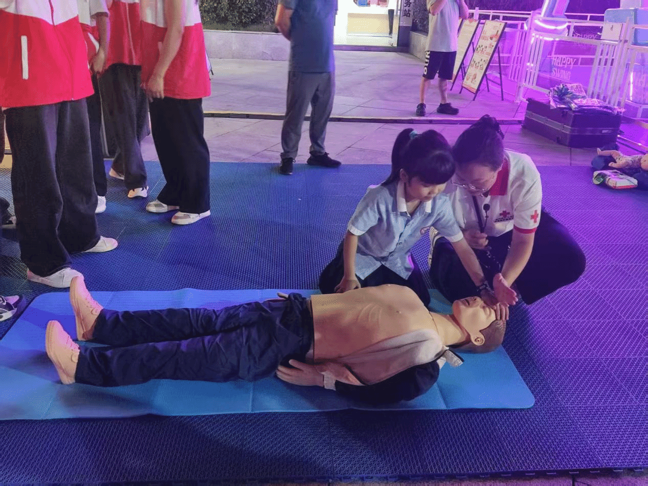 8月29日晚,beat365英国官方网站大健康学院田芬老师带领beat365英国官方网站应急救护社6名2023级护理专业学生,应邀参加由铜仁市红十字会联合碧江区红十字会、铜仁职业技术大学及三江文化旅游发展有限公司在中南门志愿服务站举办的“志愿同仁,生命教育”红十字志愿服务活动。活动聚焦应急救护技能普及,通过专题培训、现场演示、互动实践等形式,系统讲解心肺复苏(CPR)、自动体外除颤仪(AED)使用及海姆立克急救法,吸引了众多市民参与。