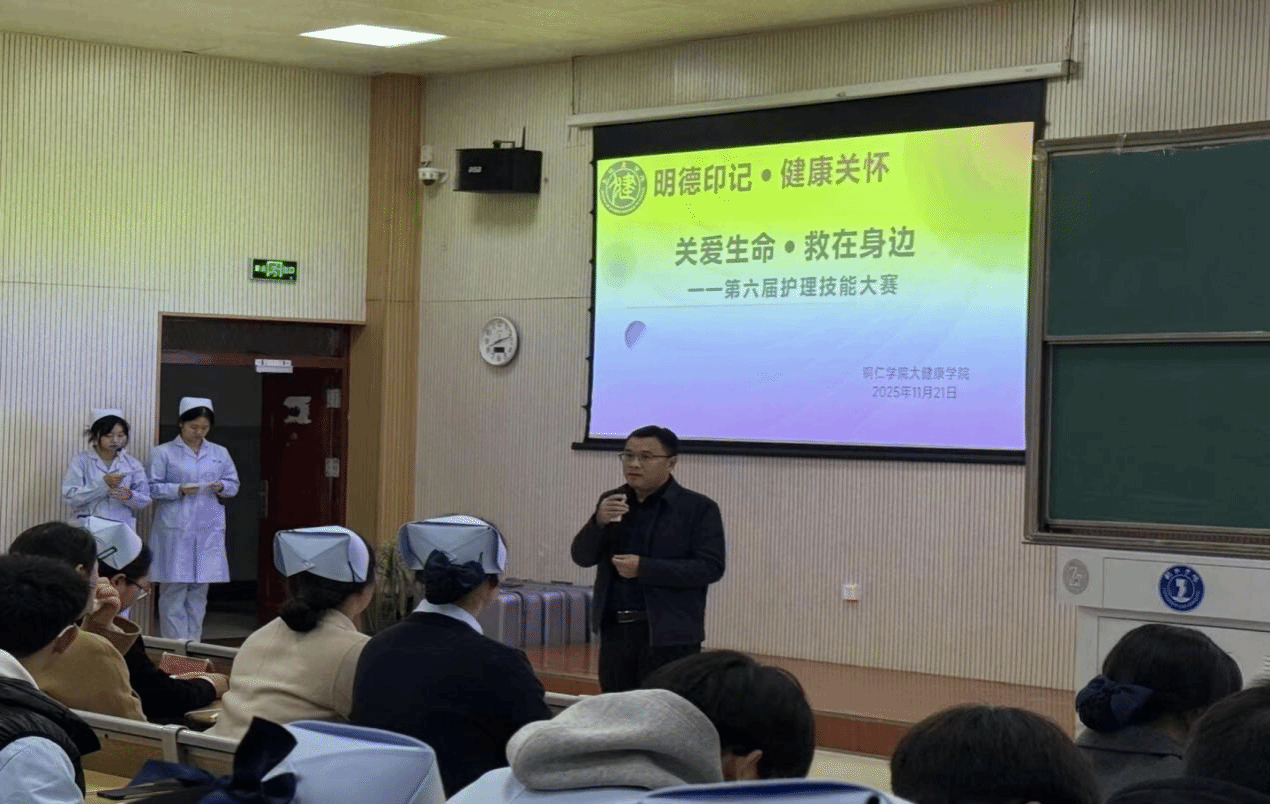 2025年11月21日,大健康学院于博思楼隆重举办第六届护理操作技能大赛。本次比赛旨在全面检验与提升护理学子的专业技能、团队协作与人文素养,为培养新时代高素质应用型护理人才搭建重要平台。