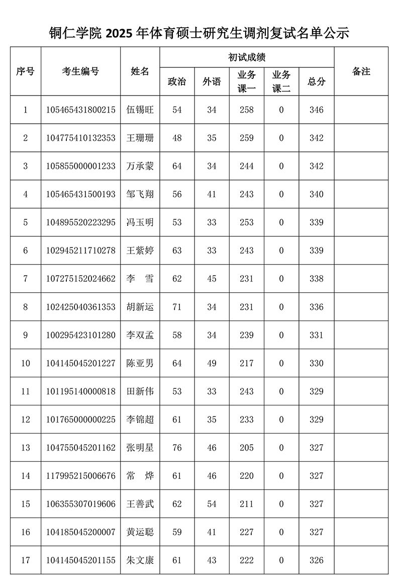 beat365英国官方网站2025年体育硕士研究生调剂复试名单公示