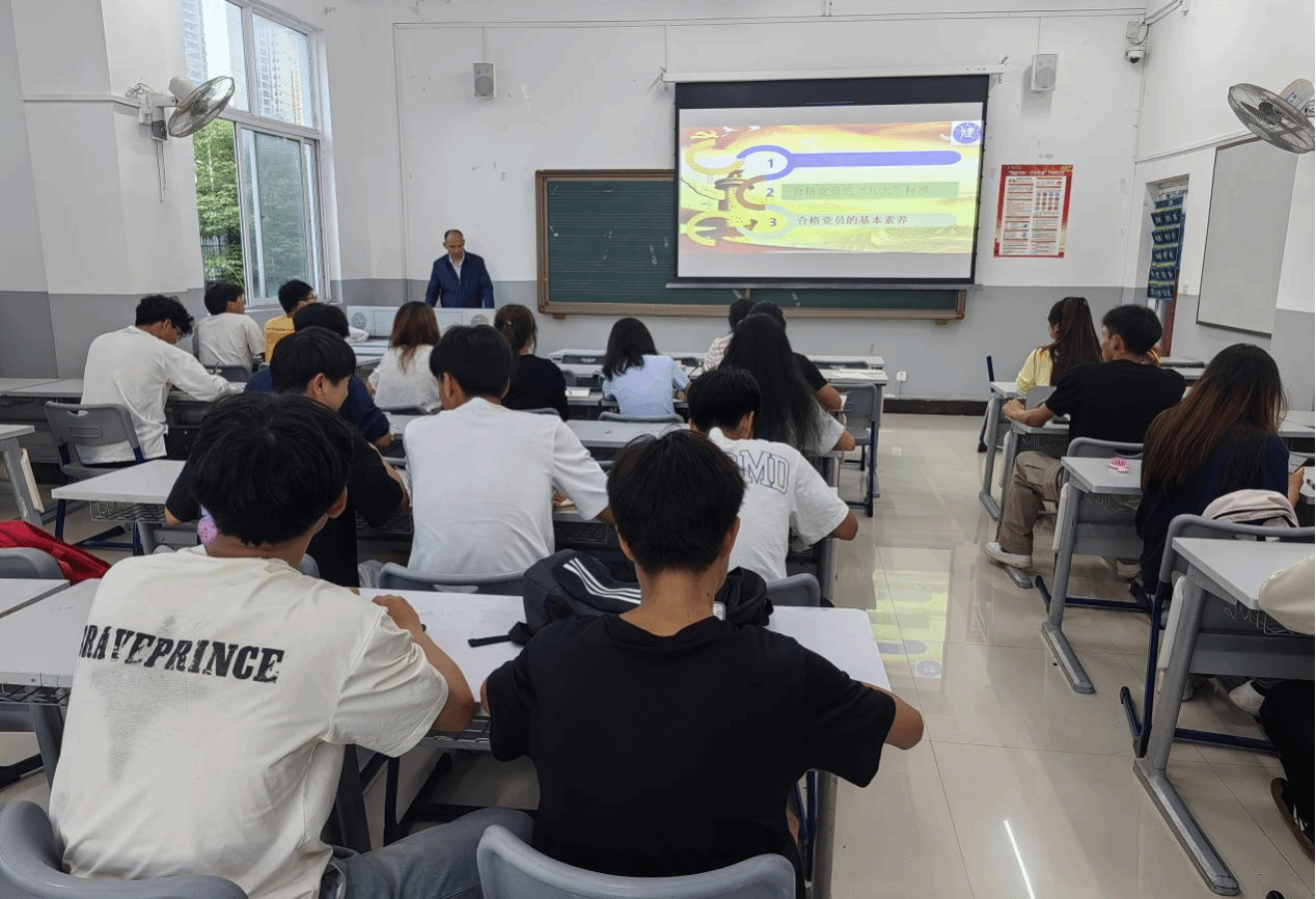 培训过程中,余静院长围绕党章的核心要义展开讲解,系统阐述了党章的性质、宗旨和组织制度。他强调,党员是党的先锋战士,必须坚定共产主义信仰,恪守党的纲领,严守党的纪律,而非仅仅满足于普通群众的标准。通过深入浅出的解读,同学们对党章的指导地位和党员的责任使命有了更清晰的认识。在理论讲解的基础上,余静院长结合学生实际,提出“四讲四有”的实践要求:讲政治、讲规矩、讲道德、讲奉献;有信念、有纪律、有品行、有作为。他通过生动案例,强调入党积极分子应在学习、生活中以身作则,不仅要在组织上入党,更要在思想上、行动上入党,并寄语同学们以高标准锤炼党性,在专业学习、志愿服务、集体活动中发挥模范带头作用。
