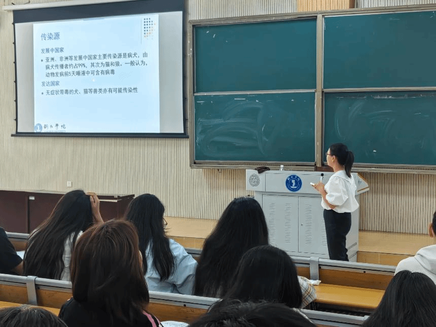 讲座伊始,印双红教授深入浅出地介绍了狂犬病的相关知识。她指出,狂犬病是一种由狂犬病毒引发的急性传染病,其病死率近乎100%,这一数据让同学们深刻认识到狂犬病的严重性。随后,印教授详细讲解了狂犬病的传播途径,着重强调病犬是主要传染源,病毒可通过咬伤、伤口或黏膜接触等方式进行传播。