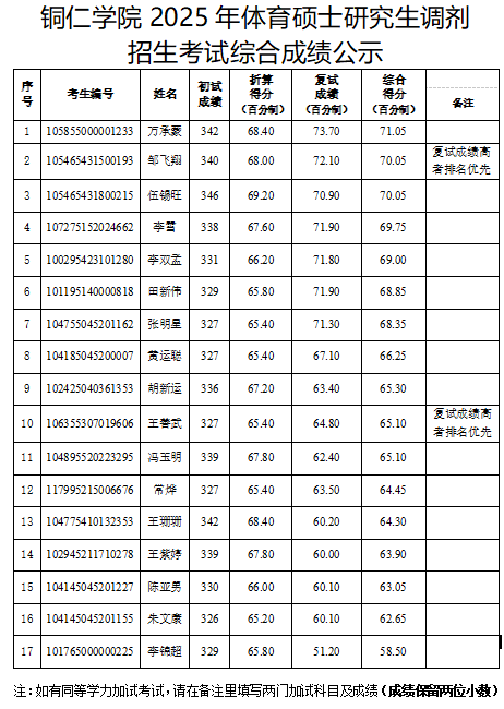beat365英国官方网站2025年体育硕士研究生调剂招生考试综合成绩公示
