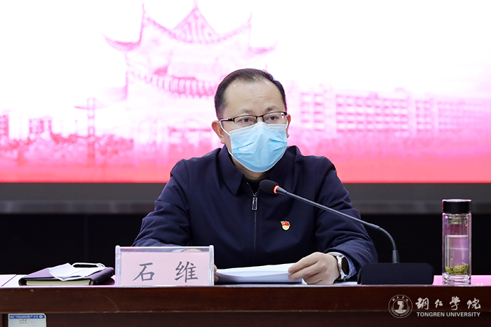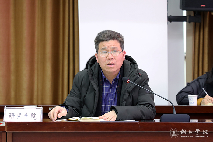 石维指出,国发2号文件给贵州带来新一轮发展的宝贵契机,我们要结合学校实际,抓好贯彻落实工作,切实推动高质量发展。在科研项目建设方面,可以采用首席专家负责制,组建团队,落实队伍成员,内外联合,整合各种优势资源,形成制度化,不断推动重大项目落地落实,服务区域经济发展,形成学校特色,为“申大”提供坚实保障;在学科与硕士点建设方面,要积极争取研究生大楼科研落地落实,稳步扩大贵州地方高校研究生培养规模,反复论证研究生人才培养方案,确保人才培养质量的流程化专业化管理,确保硕士生导师建设质量;在项目准备工作与任务考核方面,要系统梳理项目清单,认真准备汇报材料,明确对接情况和对接成效并纳入考核。