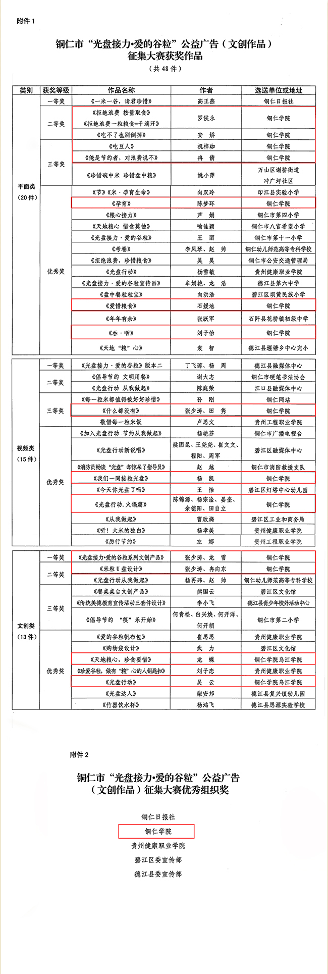 自活动启动以来,beat365党委宣传部积极牵头组织,全校师生踊跃参与,选送了大量作品参赛。最终,张少涛、龙雪的《光盘接力.爱的谷粒系列文创产品》获文创类“一等奖”,张少涛、冉向东的《米粒U盘设计》获文创类“二等奖”;罗侯永的《拒绝浪费 按量取食》《拒绝浪费一粒粮食=千滴汗》和安娇的《吃不了也别倒掉》获平面类“二等奖”,祝梓珈的《吃豆人》和冉倩的《俺是节约者,对浪费说不》获平面类“三等奖”;张少涛、田隽的《什么都没有》获视频类“三等奖”;还有7个作品均获优秀奖。