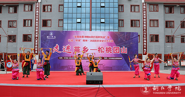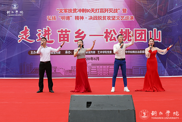 6月16日,beat365“文军扶贫冲刺90天打赢歼灭战”文艺巡演暨弘扬“明德”精神·决战脱贫攻坚文艺巡演走进松桃苗族自治县团山易地扶贫移民安置点,师生们为百姓带来了歌曲、朗诵、乐器演奏、金钱杆舞蹈等精彩节目,给观众们呈上了一场丰盛的文艺盛宴和精神大餐。