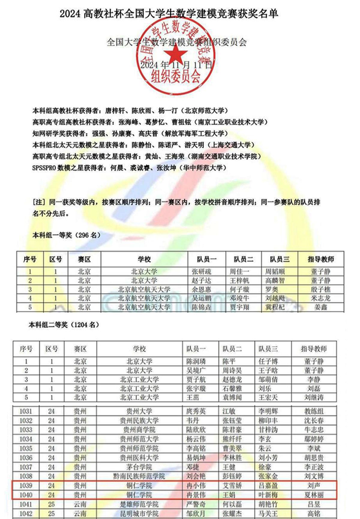 在全国大学生数学建模竞赛中喜获2项二等奖