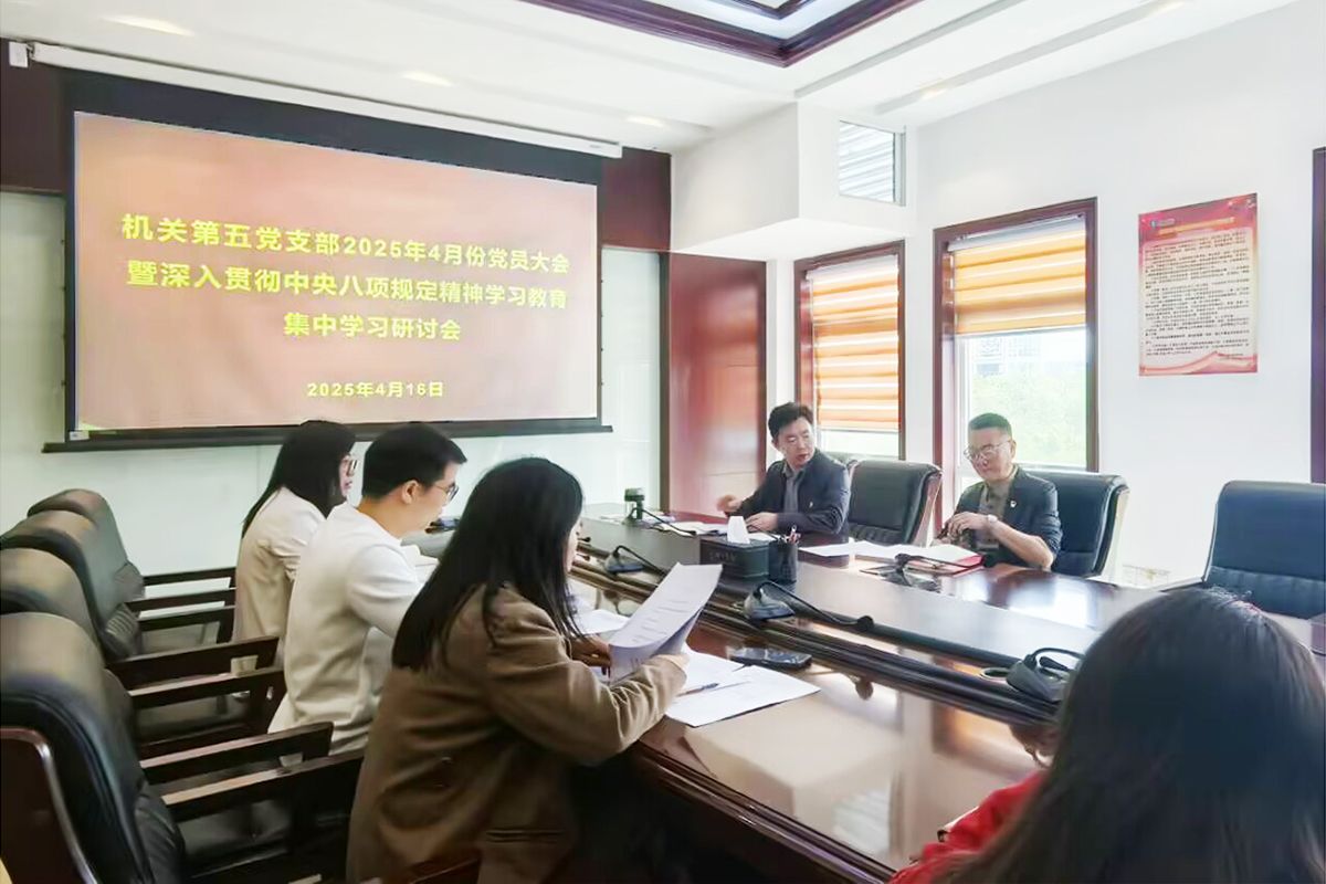 4月16日上午,机关第五党支部在行政楼8326会议室召开党员大会暨深入贯彻中央八项规定精神学习教育第一次集中学习研讨会。校党委委员、宣传部部长叶丹以普通党员身份参加会议,党支部书记梁光华会议主持,党支部全体党员参加会议。