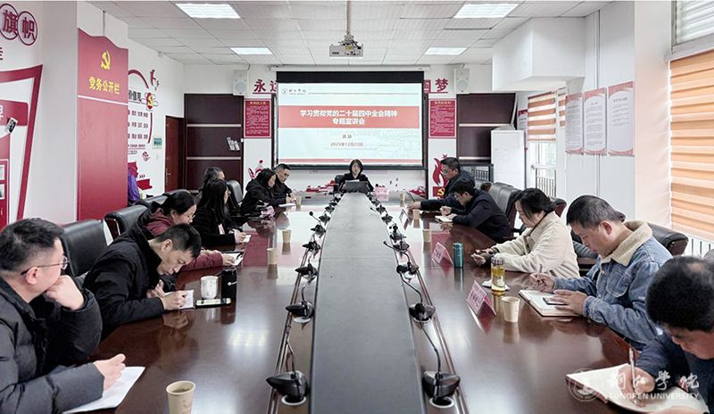 12月23日,副校长龚静在行政楼8222会议室宣讲党的二十届四中全会精神。教务处、教学质量监控与评估中心、招生与就业指导处副科级以上干部参加宣讲报告会。