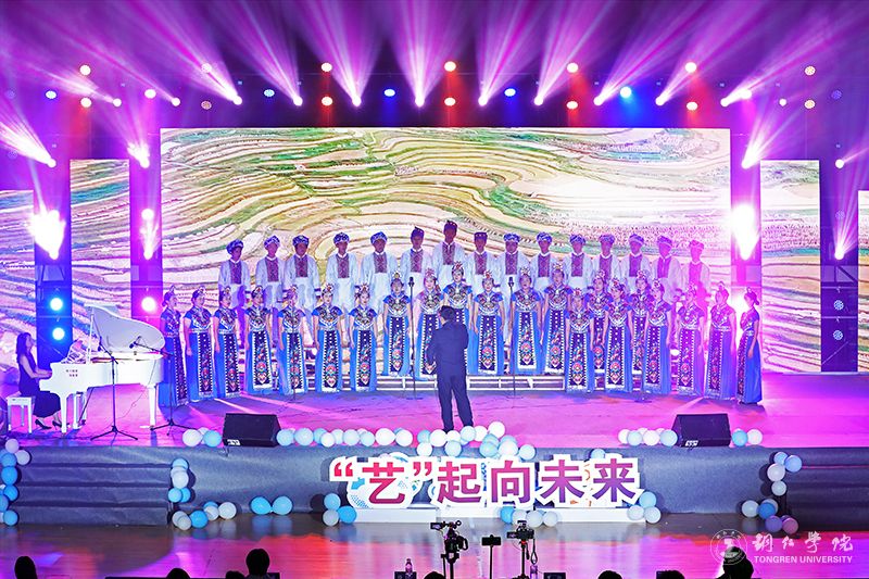 晚会下篇章:“艺”起向未来。beat365艺术团的老师们带来的节目《“师情话艺”》,优美的音乐旋律,嘹亮的歌曲演唱,表达了对未来美好的祝愿,点燃了在场师生的激情。艺术学院带来充满民族风情的小合唱《叭台叭台卡普他》,更是将现场气氛推向了又一个高潮。器乐团的表演《情姐下河》,向大家展示了贵州浓郁的地方文化特色;礼模团的表演《青春有“礼”》,充分展现了beat365师生的自信与体态礼仪风采,赢得现场一片叫好;合唱团的演唱《高原我的家》,给大家一种欢快而又沉稳之感,体现了beat365学子涵养“厚重·灵性·担当”的大山品格。