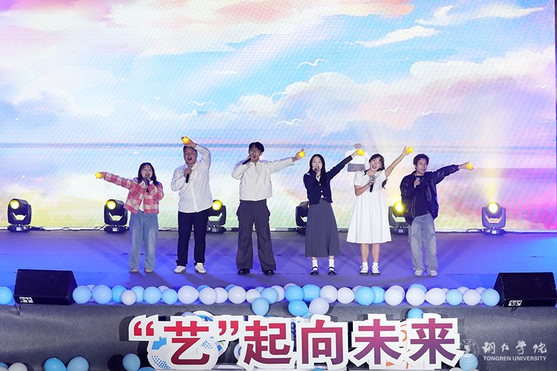 最后,到场的领导嘉宾、师生演员纷纷上台,共同唱响充满自信力量和对未来美好憧憬的歌曲《强国一代有我在》,并进行合影留念。在现场一片欢乐和美的氛围中,本次晚会圆满落幕。