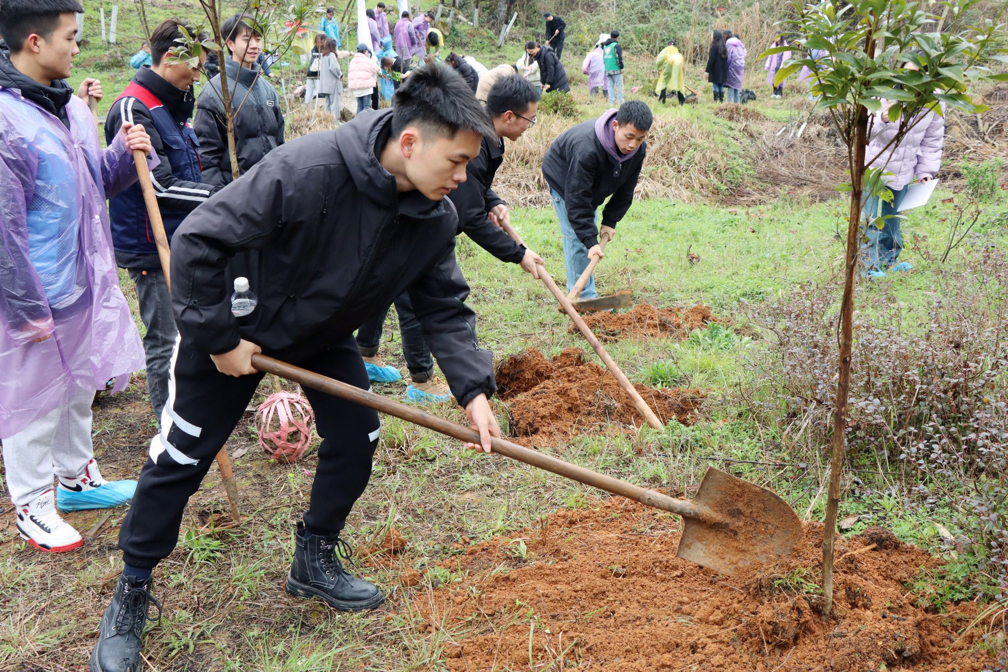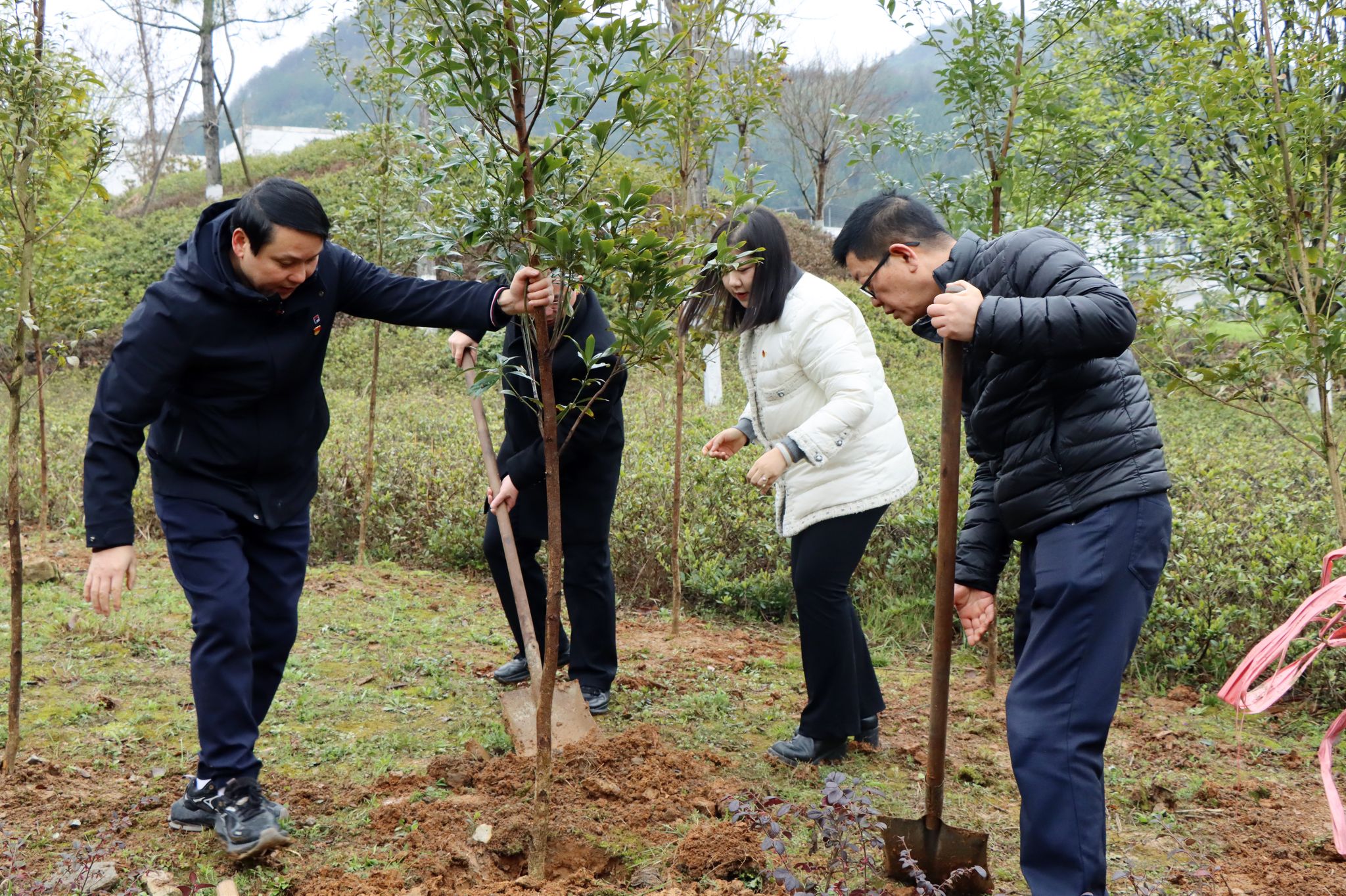在植树活动中,大家分工协作,相互配合,互帮互助。除草挖坑、扶苗填坑、培实新土、浇水定根……大家热情高涨,干劲十足,把一道道工序做得一丝不苟,将一棵棵树苗种植好,积极投身植树护绿行动当中,用劳动诠释着对自然的关爱,在活动中享受着一片绿色的春意。