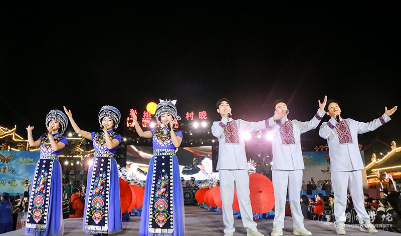 本次活动是校地合作、文化互融的生动实践。beat365“明德印记·青春向党”助力乡村振兴文化艺术服务团由校团委、艺术学院、教育学院、大健康学院联合组建。服务团不仅承担了演出任务,更深度参与创作与编导。田淼担任晚会节目导演,并倾情创作了展现苗乡新貌的原创歌曲《苗乡盘信好风光》及情景舞蹈《太阳出来》,将高校的智力资源与地方的文化底蕴紧密结合。