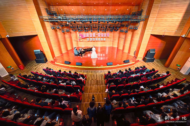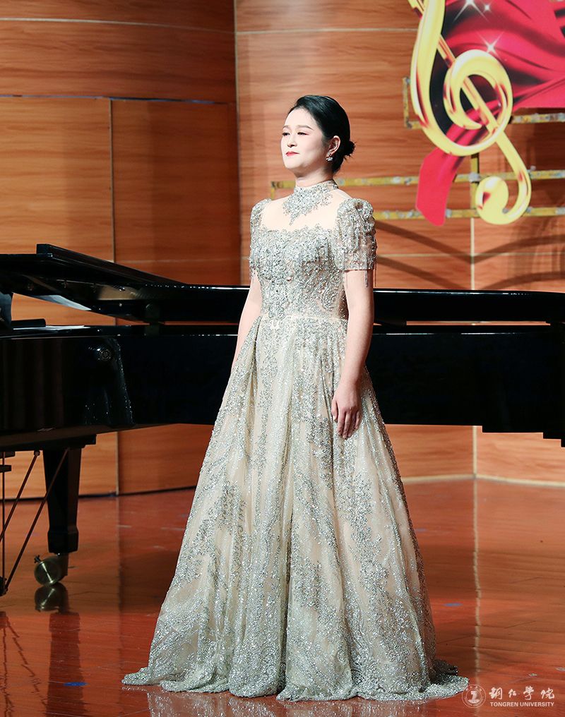 音乐会以“时光咏叹·明德放歌”为主题,旨在通过跨越东西方的经典声乐作品,展现声乐艺术的多元魅力,弘扬高雅文化,践行学校“明德”育人理念。张妮老师作为艺术学院骨干声乐教师,以其扎实的演唱功底、细腻的艺术处理和饱满的情感表达,为观众呈现了一场融汇中西、贯通古今的个人独唱音乐会。