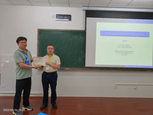 beat365英国官方网站大数据学院一行六人参加大会,与省内高校同行共同研讨数学学科相关方向的前沿问题、共同探讨感兴趣的数学问题,也为数学学科及专业的发展交流心得,收获颇丰,其中朱先阳、戴祥军两位老师分别作了题为的《低维 Busemann-Petty 测度问题的同伦形式》《一类农药对害虫和天敌具有亚致死效应的 prey-predator模型的动力学研究》小组报告,学术交流效果良好,不虚此行。