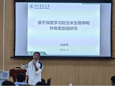 2024年11月14日19:30,华中农业大学博士生导师刘建晓博士应邀在博思楼206作了《基于深度学习的玉米生物学和作物表型组研究》的学术讲座。讲座由大数据学院副院长黄贻望教授主持,我院师生约200人参加此次学术进座。