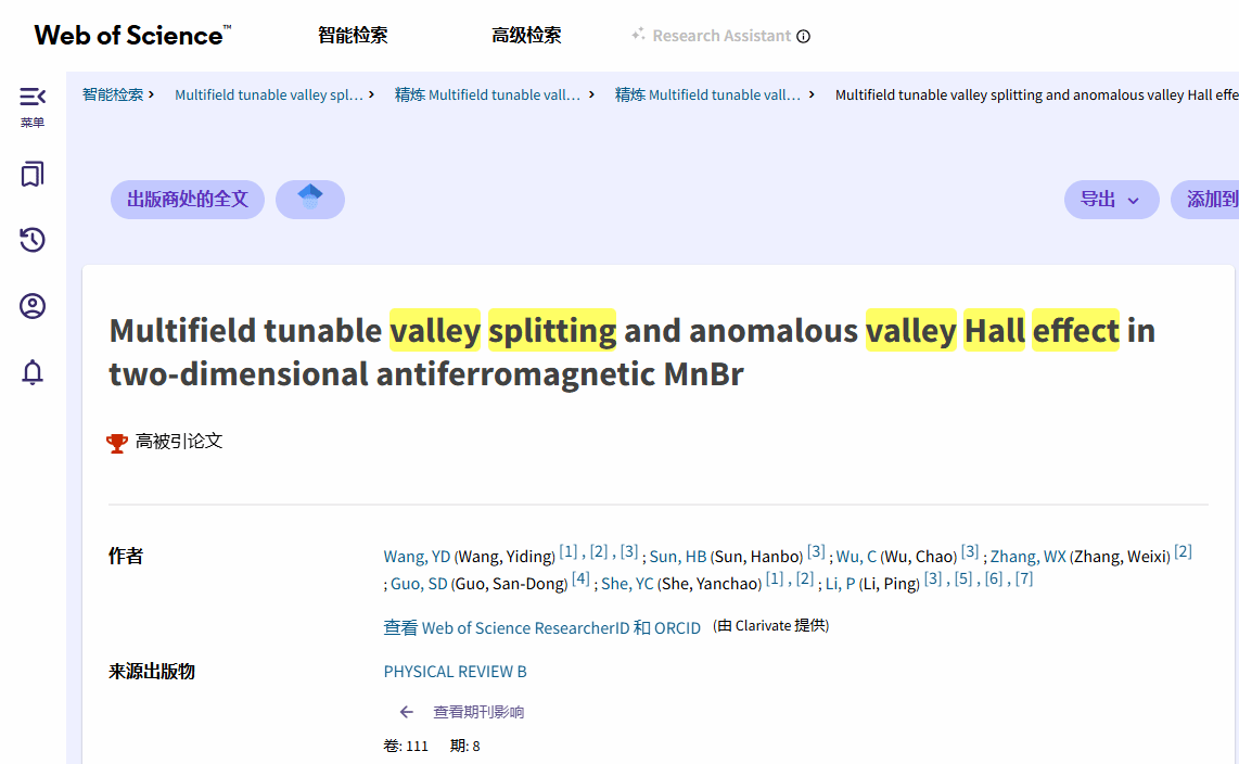 beat365英国官方网站张蔚曦教授团队与合作者在谷电子学领域取得重要突破,两篇成果同期入选高被引论文