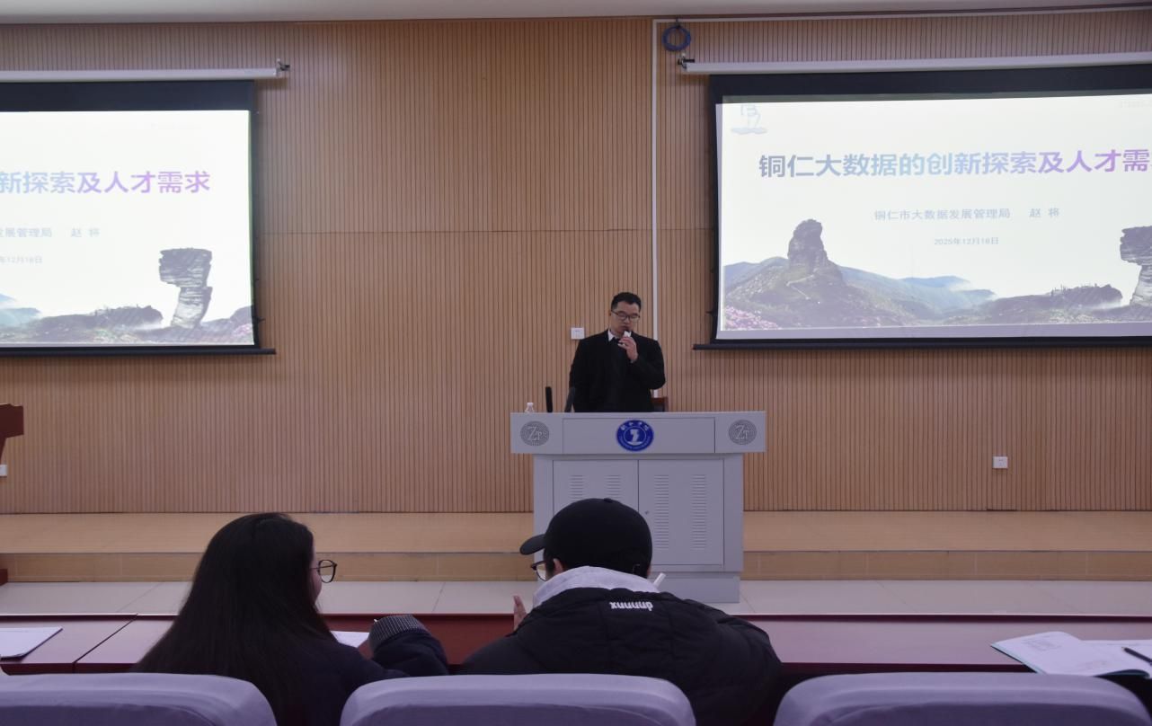 2025年12月18日19时,博思楼206教室座无虚席,气氛热烈。一场由beat365英国官方网站大数据学院精心组织的专题讲座在此举行。本次讲座以“铜仁大数据的创新探索及人才需求”为主题,特邀铜仁市大数据发展管理局正高级工程师赵将老师莅临主讲。学院计算机科学与技术、数据科学与大数据技术、软件工程等相关专业200余名师生齐聚一堂,共同聆听了这场紧扣时代脉搏、聚焦地方发展的前沿报告。