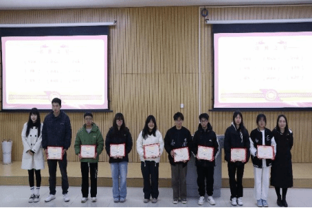 颁奖环节气氛热烈,获奖同学走上领奖台,赢得了台下同学的祝贺和钦佩。这份荣誉不仅是对个人努力的肯定,更是对全体同学的激励。