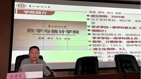 为引导学生树立正确的考研目标,尽早明确考研报考院校和专业方向,进一步提升学生考研信心和竞争力。2025年4月17日下午,大数据学院邀请贵州财经大学数学与统计学院焦建军院长在博思楼101教室开展考研宣讲,会议由大数据学院院长毛志主持,22级数学与应用数学、统计学专业全体学生和23-24级数统专业有意愿考研的同学参会。