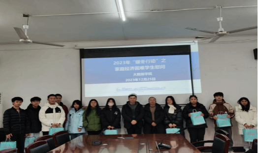 为切实加强学院与困难学生的联系和沟通,12月25日上午,学院于会议室开展“暖冬行动”座谈会,会上大数据学院党委书记颜宝平、党委副书记安勐、辅导员代表李周珊与资助生代表亲切交谈,关心他们的在校学习、生活等情况,并对同学们提出了殷切期望:希望大家珍惜短暂的大学时光,脚踏实地,努力学习,做一个积极、自信、乐观的人。在师生亲切交谈之后,与会领导为资助学生代表送上了冬日暖心礼包,希望同学们能在寒冷冬日感受到学院的关怀和温暖,并将这份温暖传递下去。